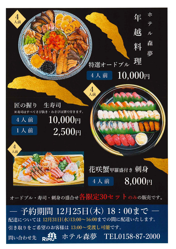 ※オードブル・寿司・刺身の盛り合わせ 各限定30セットのみ の販売です。